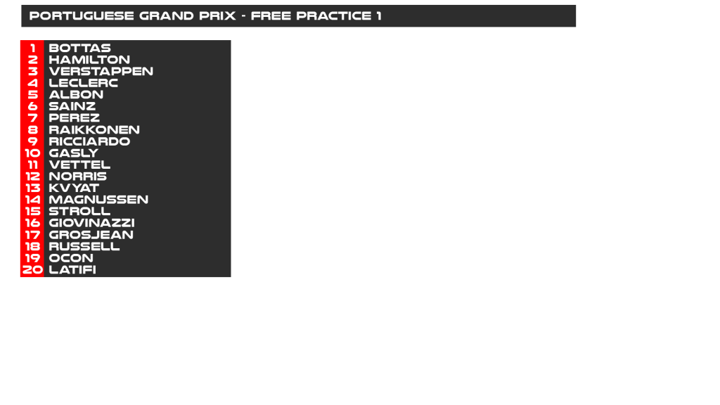 Here is the result of the first practice session in Portimao!