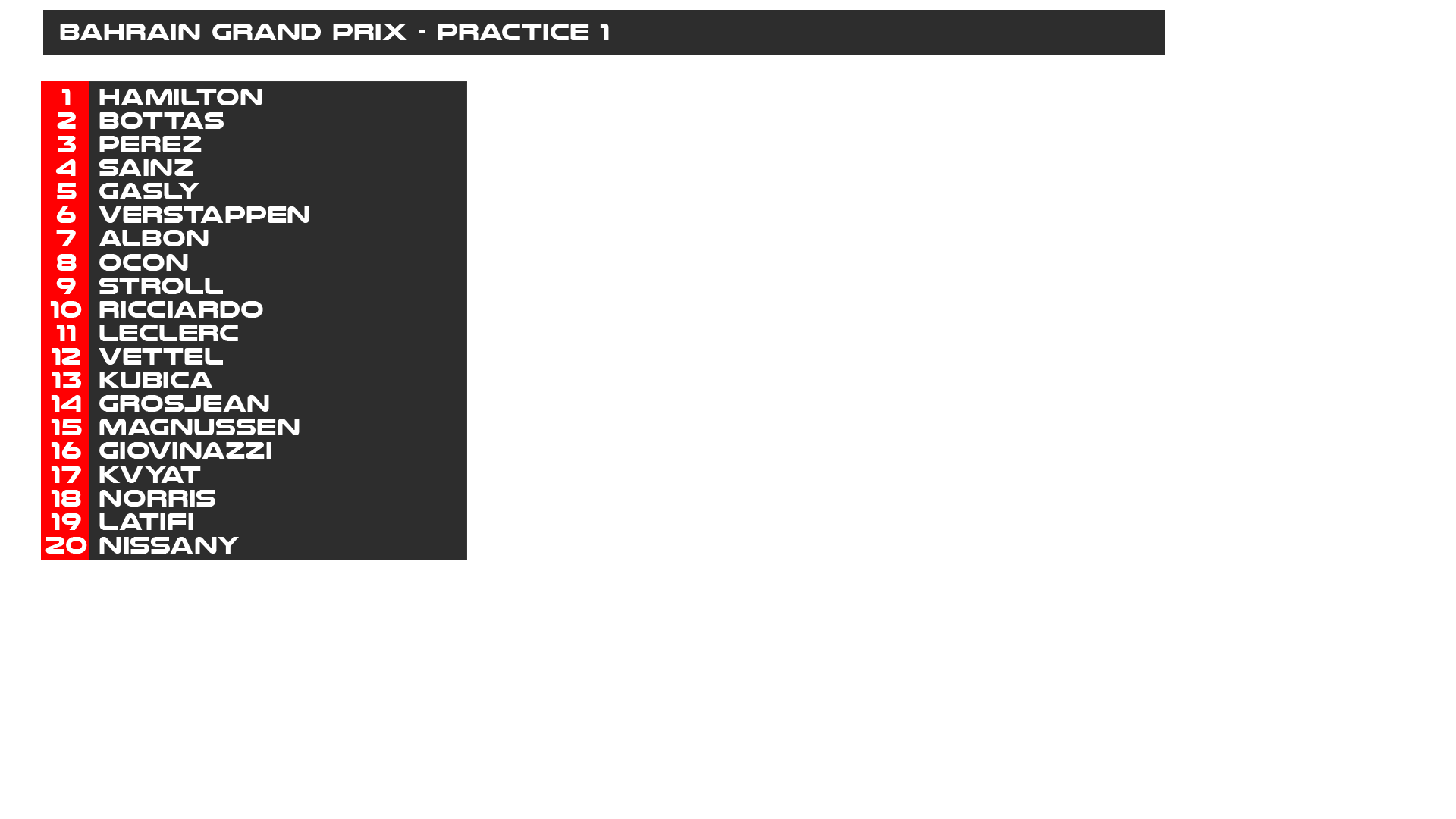 The Bahrain GP weekend is underway and Lewis Hamilton topped FP1 for the first time since Hungary ahead of his team-mate Valtteri Bottas in second. Whilst Sergio Perez in what could be his third to last race in Formula One set the third fastest time.