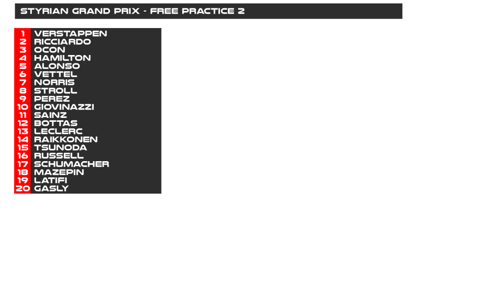 Max Verstappen set the fastest time once again by 3 tenths of a second back to Daniel Ricciardo in second, who had a good afternoon in the McLaren to end in second.